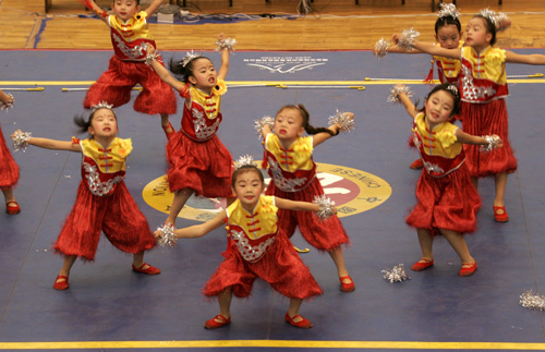 裁判员代表和运动员代表分别宣誓后,在场人员观看了体育学院组织的文艺表演。随后,比赛正式开始比赛。