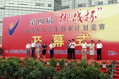 2006年6月7日上午,第四届“挑战杯”河南省大学生创业计划竞赛决赛开幕式在我校金明校区礼仪广场隆重举行。团中央学校部副部长陈光浩,省科学技术协会副主席何凤莲,省教育厅学生处副处长贺庆,开封市副市长王学杰,校领导郑邦山、黄亚彬、赵国祥及部分兄弟院校的领导出席了开幕式。开幕式由共青团河南省委员会副书记王丽主持。