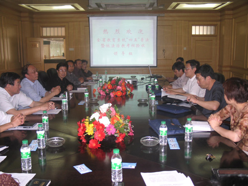 5月23日下午,全省教育系统“四五”普法教育检查组一行四人来到我校,就“四五”普法教育及依法治校活动进行检查。校领导孟庆琦,党委宣传部、教务处、人事处、财务处、学生处、校园管理处、校工会、校团委、法学院等有关单位领导与会。会议由党委宣传部部长李文山主持。
