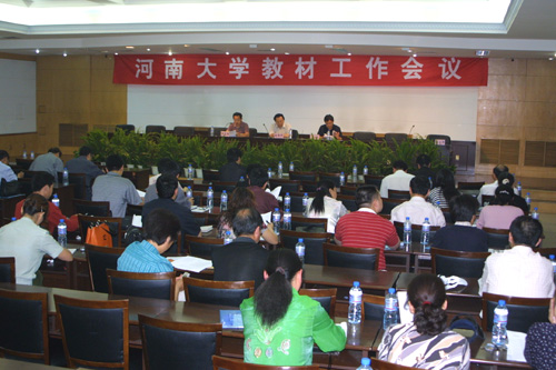 2006年5月23日下午,河南大学教材工作会议在新行政楼第四会议室召开。副校长赵国祥,教务处副处长王强、郭志祥,各学院(部)教学院长(主任)、教务员,有关职能部门负责人与会。会议由王强同志主持。