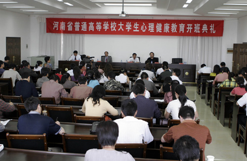 2006年5月16日上午,由河南省高工委、教育厅主办,我校承办的河南省普通高等学校大学生心理健康教育培训班,在金明校区干部培训中心501多媒体厅隆重举行。省教育厅社政处处长陈垠亭,我校领导赵国祥、孟庆琦出席了开班典礼。来自全省各高校80多名教师参加了开班仪式。开班仪式由学生处处长张顺利主持。