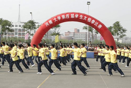 郭天榜同志说,河南大学作为历史悠久的综合性大学,担负着为国家培养德、智、体、美、劳等全面发展的合格人才的重任。他号召同学们在此次比赛中赛出风格、赛出友谊、赛出水平,并在今后的生活中做到“每天锻炼一小时,健康工作50年,幸福生活一辈子”。梁晓夏同志代表校行政向各代表队和担任裁判的老师表示慰问和感谢。他说,学校体育工作是整个教育事业的重要组成部分,对大学生的全面发展有着不可替代的作用。河南大学历来高度重视大学生体育工作,制定了相关的管理办法和制度,大力普及太极拳就是其中一项重要的决定。