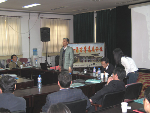 2006年4月21日~24日,“认知语言学高层论坛”在我校六号楼三楼报告厅隆重举行,我校副校长黄亚彬出席开幕式并致辞,开幕式由河南省高等学校人文社科重点研究基地河南大学英语语言文学研究中心主任、河南大学特聘教授、博士生导师牛保义主持。本届论坛由河南大学英语语言文学研究中心和外语学院共同举办。