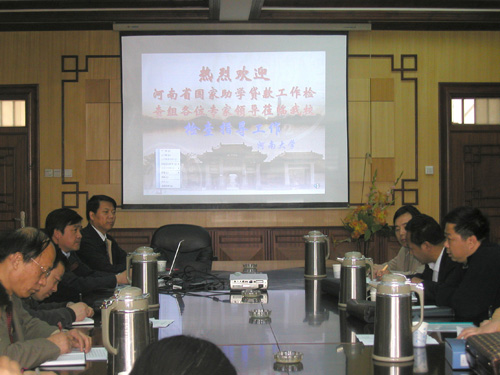 孟庆琦同志对检查组专家同志的到来表示热烈欢迎,并就我校的国家助学贷款工作情况作了汇报。他说,国家助学贷款工作是各高校学生工作中的一个重点。河南大学对此历来重视,学校多次召开相关会议,研究部署工作,进行了深入探索,保障了我校贫困大学生正常的学习和生活,取得了显著效果。