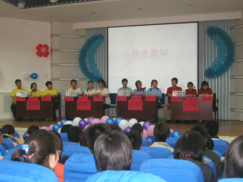 在紧张激烈的决赛现场,分别身着红、白、蓝、黄四色服装的参赛队员精神抖擞,分分必争。竞赛由“携手起航(必答题)”、“分秒必争(快速判断)”、“空中餐点(观众互动)”、“风险提速(风险题)”和“飞的更高(抢答题)”五个部分组成。必答题、风险题和抢答题环节,选手们沉着应战,挑战自我、挑战对方,不仅显示了各自的知识功底,而且展示了河大学子的风采;搞笑的观众互动和刺激的快速判断环节将比赛推向高潮,赢得了师生们的阵阵掌声。最后,历经紧张的角逐,新闻与传播学院以2600分的最好成绩摘取了竞赛的桂冠,哲学与公共管理学院荣获第二名,其他两个学院并列第三名。校领导郑邦山、梁晓夏,学工部部长张顺利分别为第一、二、三名获奖学院代表和获奖选手颁发了奖牌、奖金与获奖证书、纪念品,知识竞赛圆满结束。