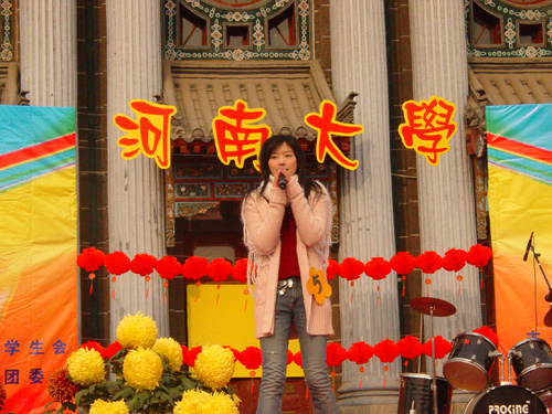 已成功举办了二十届的校园歌手大赛,今年第一次把大舞台从礼堂内移师到大礼堂广场。入冬的严寒,挡不住青春的热情。比赛火爆的场面,烘托出百年河大激昂的青春活力,也展现了河大学子勇于创新,追求卓越的精神风貌。与往年不同,今年的决赛分为三个环节,并首次采用了淘汰制。比赛中,选手们热情高涨、表演积极,节目精彩纷呈、风格各异,通俗、民族等多种歌唱形式百花齐放,大多数歌手选唱的歌曲都是在大学校园内传唱的流行歌曲,但103入侵乐队的《山上有个庙》、《追梦魂》两首原创歌曲再次成为大赛的一个亮点,体现了大赛追求创新的理念。歌曲《一千年以后》以酷似林俊杰的声音赢得了轰动全场的喝彩。其他选手也以其精彩的表现博得了观众阵阵掌声,使整场比赛高潮迭起。河南省“雪碧杯”新生力量飙歌大赛获奖者王涛和龚倩的客串表演也使场上的气氛异常活跃。经过三个多小时的激烈角逐,06号选手熊懿凭借出色的唱功获得一等奖,二等奖桂冠由李扬和103入侵乐队摘得,BF组合等三组选手获三等奖,杨亚男等6名选手获优秀奖。