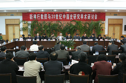 2005年11月14日上午,靳德行教授与20世纪中国史研究学术研讨会开幕式在我校新行政楼第四会议室举行。来自全国各地的专家、学者,靳德行教授生前的同学、同事、学生聚集一堂,共同缅怀靳德行教授的学术业绩,对20世纪中国史研究进行深入研讨。校长关爱和出席会议。副校长黄亚彬主持会议。