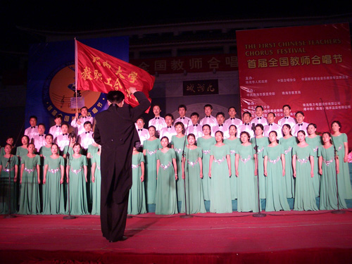 七月的南国,骄阳似火,热浪滚滚。由中国合唱协会、中国教育学会音乐专业委员会主办的首届全国教师合唱节于7月24日至28日在美丽的南疆名城珠海举行。我校教职工合唱团作为河南省的唯一团队在校工会主席袁顺友、副主席孙青艾等带领下,首次走出河南参加了合唱节,在强手如林的赛场上倾情演绎了《抗敌歌》、《嘚嘚调》、《涅槃》三首曲目,展示了我校教职工的风采,博得了广泛好评,一举夺得了银奖,给大赛组委会和珠海市人民留下了美好的印象,我校因此被同时授予“关心教师文化工作先进单位”荣誉称号。