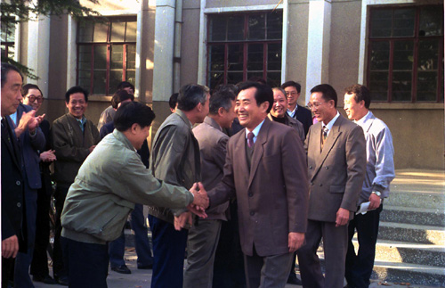 靳校长是1991年起执掌校政的,当时河南大学的发展正面临着巨大的困难与压力。如何在师范院校的基础上进一步调整学科专业结构,真正构建起综合性大学的框架,如何适应学校的快速发展,建立一支高层次高水平的教师队伍,如何在“211工程”建设项目旁落他人后,振奋河大教职工生再创辉煌的精神,靳校长和当时的党政班子一起夙兴夜寐,辛勤操劳,做了很多艰苦细致的工作,保证河大不断向综合性大学的建设目标迈出坚实的步伐。