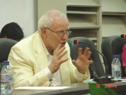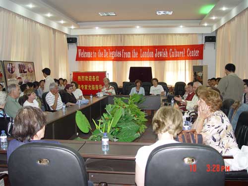 2005年5月10 日下午,英国伦敦犹太文化中心访问团一行十余人在著名历史学家Jerold Gotel 博士和南京大学犹太宗教学系博士生导师徐新教授的陪同下到我校讲学,访问团一行在七号楼三楼报告厅与我校历史文化学院的青年教师和世界史研究生以及犹太研究所的有关人员进行了友好交流和座谈。