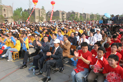 这项活动是我校上半年对外宣传的一项重要工作。学校党委高度重视此项工作,成立了以党委副书记郑邦山为组长,副校长王发曾、赵国祥、工会主席袁顺友为副组长的领导组。3月份以来,党委宣传部积极策划、协调,与电视台多次商讨录制方案,最终达成了共识。此次录制工作,任务重、标准高、涉及面宽,宣传部、党办、校办、学生处、团委、离退休工作处、总务处、后勤总公司、校园管理处、工会及有关学院,做了大量的前期准备和协调服务工作,保证了录制工作的正常顺利进行。