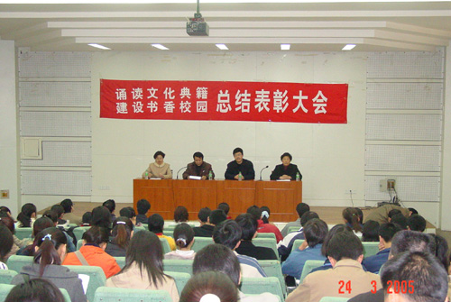 郑邦山同志充分肯定了“诵读文化典籍,建设书香校园”活动在促进校园文化建设和大学生成才等方面的意义,并对这次活动的圆满成功表示祝贺。他说,对于一所高校来说,学生的课外实践活动应该成为除教师、图书资料、实验设备之外的第四大支柱,而这次活动的成功举办应该是支撑这根支柱的重要手段之一。郑邦山同志希望认真总结经验,要求图书馆要依靠丰富的藏书,在做好传统工作的同时,多开展一些大型的活动,推动校园文化的建设,并希望广大学生积极参与到学校的各项改革与发展的事业中来,强化成材意识,为早日将我校建成一流的大学做出自己应有的贡献。