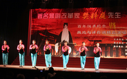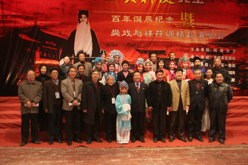 18日晚,由我校主办、开封市总商会承办的樊粹庭先生百年诞辰“樊戏”暨祥符调精品演唱会在我校大礼堂举行,校领导张秉义、郑邦山、王发曾与参加纪念活动的代表和2000余名戏迷观看了演出。演出前,郑邦山同志发表热情洋溢的讲话。他代表学校党委、行政和四万名师生对参加樊粹庭先生百年诞辰纪念活动的来宾和参加演出的豫剧名家表示热烈的欢迎, 他简要介绍了我校的基本情况和樊粹庭先生的伟大成就,并预祝演出取得圆满成功。演唱会名家荟萃,来自省内外的国家一级演员潘雪芬、牛淑贤、靳湘云、柏青、武惠敏等豫剧名家演唱了《女贞花》、《王佐断臂》、《义烈风》等经典剧目的精彩选段,展示了“樊戏”和祥符调的迷人魅力;我校艺术学院学生和“梨园春”少儿组总擂主张玫也登台献艺,老中青三代豫剧演员同台演出,精湛的表演不时赢得满堂喝彩。