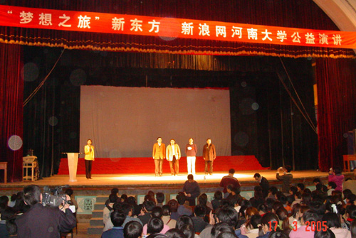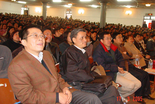 整场讲座在激动、欢快、和谐的气氛中进行。新东方的名师们通过自己亲身经历与我校学生畅谈理想与奋斗、就业规划、留学与成才等问题。俞敏洪的坚韧、王强的幽默、包凡一的睿智、周成刚的执着都给同学们留下了深刻的印象。俞敏洪通过讲述自己丰富的人生经历向大家展现出他们坚忍不拔的创业蓝图,他激励同学们要大胆探索、勇敢追求、持之以恒。王强、包凡一、周成刚等也通过各自的留学欧、美、澳的经历与同学们分享学习的快乐,他们严谨的逻辑陈述、幽默的例证、标准的英、美口语发音以及从他们身上表现出的无限活力,演绎出一种绝妙的英语境界,使同学们受益匪浅。