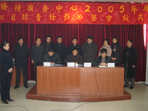 2005年元月31日下午,接待服务中心2005年度目标责任书签订仪式在四楼会议室隆重举行。