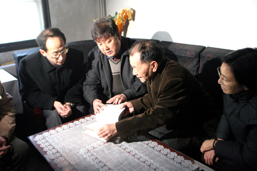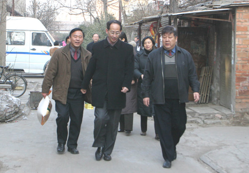 袁主席一行来到位于武夷路河大家属院药学院一位青年教师的家里,这位教师家庭生活比较困难,今年又考上了博士,当他接到袁主席送给他的救济金和慰问品时,感动万分,激动地说:“谢谢学校,谢谢学校领导的关心!我一定好好学习,读完博士学位后,一定回到河大努力工作,为学校发展作贡献。”要告别了,他还紧紧握住袁主席的手,依依不舍地送出楼外。