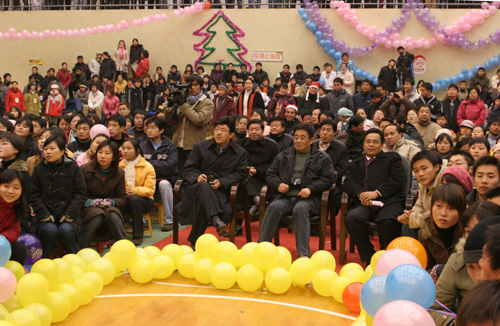 “嵩岳苍苍,河水泱泱,中原文化悠且长……”12月24日晚,河南大学体育馆内,100多名来自不同国家的留学生深情唱起的河南大学校歌,赢得了学子们阵阵热烈的掌声。当晚,由该校国际教育学院与体育学院联合为留学生举办的“平安夜晚会”隆重举行,200多名留学生与河大学子欢聚一堂,共庆圣诞。