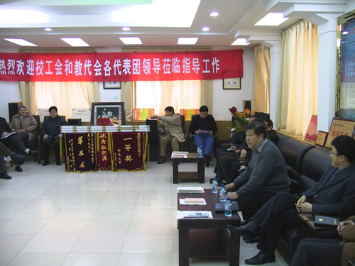 2004年12月21日上午,大雪纷飞,在校党委副书记郑邦山、工会主席袁顺友的带领下,由我校教代会各代表团团长和专门工作委员会主任共40余人组成的巡视团冒雪考察了后勤工作。