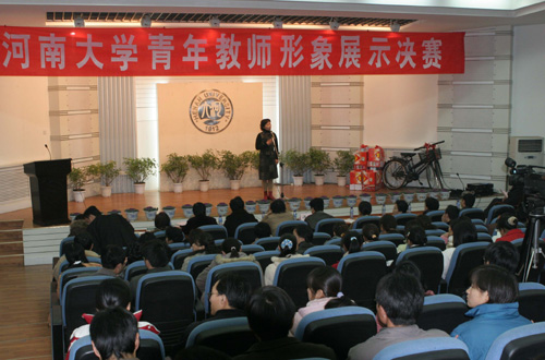 12月17日下午,科技馆二楼报告厅里不时传出阵阵热烈的掌声,由校工会主办、青年教师工作委员会、职工教育委员会承办的河南大学首届青年教师形象展示大赛决赛在这里举行。来自12个分工会的12位青年教师进行了激烈的角逐,尽情展示了他们的风采。校党委副书记郑邦山、副校长王发曾、校工会主席袁顺友等校领导亲临赛场观看。