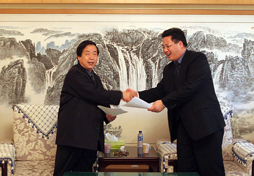 11月26日上午,我校与河南永盛投资担保有限公司共同投资组建河大印务有限公司(暂定名)协议在明仑校区办公楼二楼接待室签定,史全生副校长和河南永盛投资担保有限公司席春迎董事长分别代表甲乙方在协议上签字。至此,备受校办产业干部职工关注的一件大事最终确定。