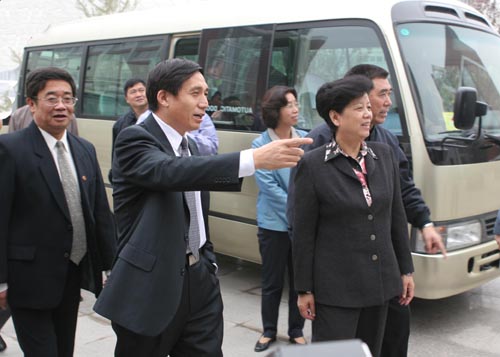 省政府副秘书长介新,开封市委书记孙泉砀、市长刘长春及我校在校的校领导关爱和、王发曾、郭天榜、赵振海、袁顺友、卢克平等陪同陈至立同志参观了我校新老校区。