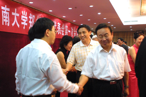 关爱和校长发表了热情洋溢的讲话。他说,2002年9月,河大举行了90年校庆系列活动,数千名校友荣归母校,参加了这一盛大庆典。两年来,河大以90年校庆为契机,励精图治、团结奋进、和衷共济、开拓创新,通过加强学科建设、培养和引进高层次人才、扩大招生规模、新校区建设等项工作,在提高办学层次、办学质量、业务水平和扩大建设规模、办学空间、对外开放等方面都取得了历史性的突破。这是各级领导、各位校友和社会各界人士关心支持的结果。希望校友会成为校友和母校交流沟通的桥梁,一如既往地继续关心支持母校的发展和建设,为母校提供大力支持和帮助。
