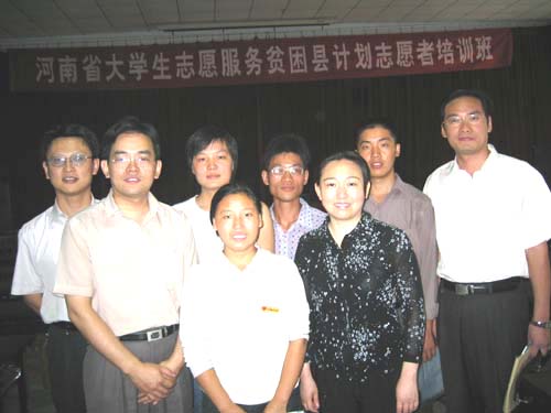 9月15日上午8时,河南省大学生志愿服务贫困县的首批100名青年自愿者送行仪式在省会郑州隆重举行,省委副书记王全书出席仪式并为志愿者颁发了志愿服务确认通知书,来自我校法学院、外语学院、成人教育学院和人民武装学院的赵金凤、罗明雪、李昆峰和田和英四位同学与来自省内其他32所高校的学子共100人参加仪式并宣誓,加入志愿服务贫困县这一行列。上午9时,经过短期集中培训后的100名志愿者乘车出发,奔赴我省兰考、汝阳、鲁山、卢氏、淅川、宁陵、商水、确山、罗山、新县等10个贫困县从事为期2年的志愿服务活动,为基层的发展奉献青春、智慧和力量。