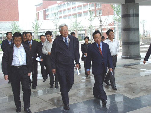 当天上午,在校党委书记张秉义、副校长王发曾、郭天榜的陪同下,罗豪才一行首先视察了我校新校区的建设和使用情况。在视察过程中,张秉义同志向罗豪才详细介绍了河大新校区建设的选址征地过程、总体规划设计理念、环境艺术设计、建设进展、建设质量及投入使用情况等问题。
