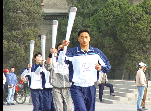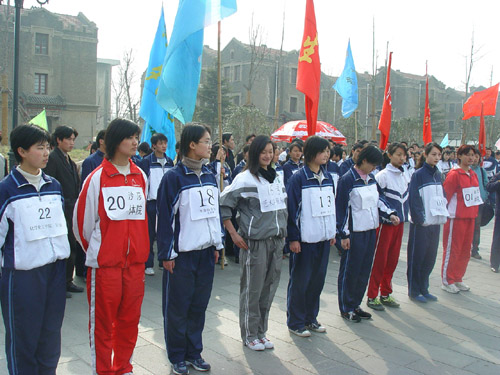 3月13日上午,我校2004奥运会火炬传递手及历史见证人选拔赛在大礼堂广场隆重举行。来自体育学院、化学化工学院等23个学院的代表队,经过院内选拔,开始参加全校比赛。经过一天的选拔,体育学院的白洋和沈博表现突出,获得我校奥运会火炬传递手资格。
