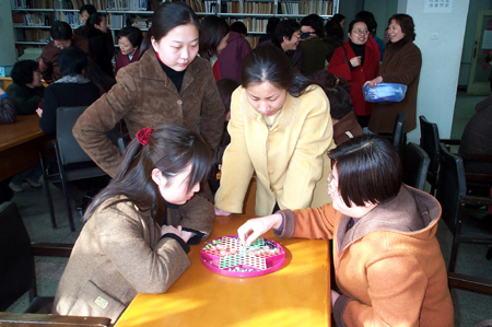在一年一度的“三•八”国际妇女节即将来临之际。图书馆工会组织了丰富多彩的文娱活动来庆祝这一节日。
