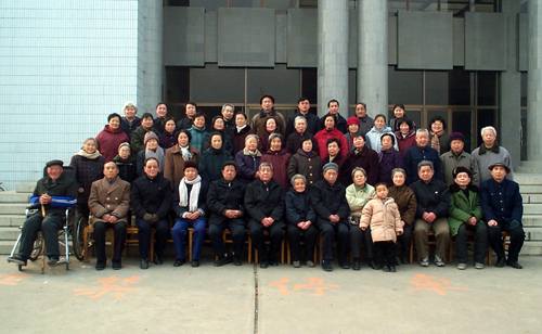 2004年1月6日下午,图书馆东馆门前聚集着几十位年逾花甲的老人,温暖的阳光照耀着他们的笑脸。这是图书馆为前来参加迎新茶话会的老同志们合影留念。