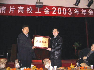 12月20日,豫东南片高校工会工作会议在我校召开,11所高校工会主席参加了会议,省教育工会主席李新江同志出席了会议,并向我校工会颁发了全国“抗击非典工作先进单位”奖牌。我校工会主席袁顺友同志作为东南片组长就协作组工作做了总结和说明,副组长、信阳师院工会主席张前中同志主持了会议。