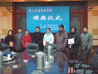 2003年12月17日晚,第二届道风奖学金颁奖仪式在河南大学新办公楼二楼会议室举行。宣传部、研究生处、科研处、文学院、圣经文学研究所等单位负责人,以及文学院的其他师生约30余人参加了颁奖仪式。