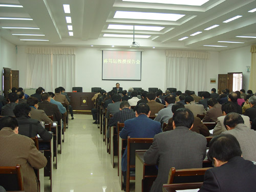11月10日上午,省委高校工委书记、省教育厅厅长蒋笃运教授应邀到我校金明校区,为正在河南省干部教育培训中心河南大学分部学习的首期市厅级领导干部进修班、第二期省直处长进修班、第十五期高校中青年干部进修班全体学员作了一场题为“树立科学发展观,加快河南高等教育改革和发展”的专题报告。报告会由河南大学党委副书记赵豫林同志主持。