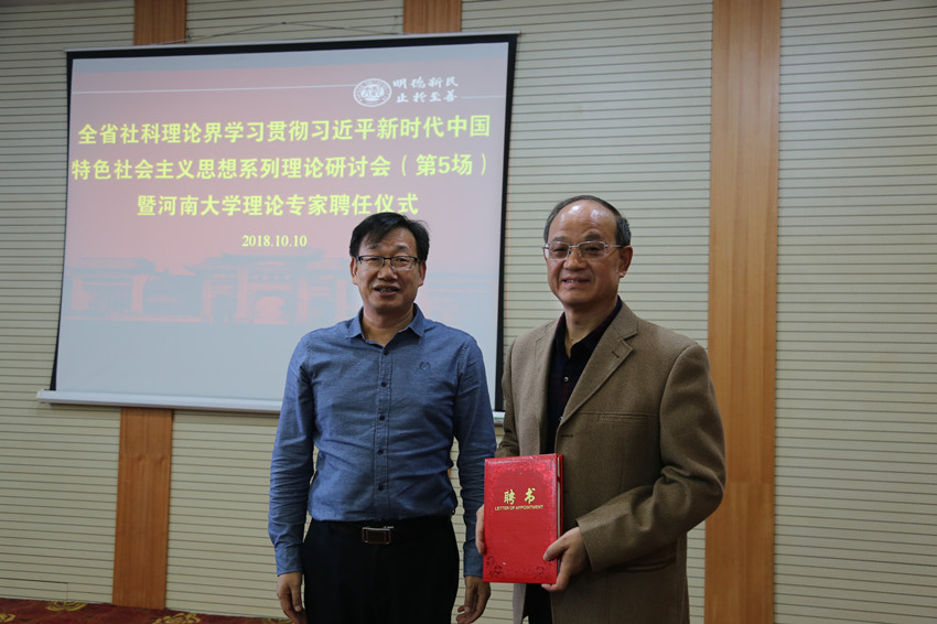 研讨会上,受聘专家围绕马克思主义政治经济学、马克思主义学科定位、习近平教育思想、习近平法治思想、文化传承与创新、高校党建工作等进行了解读、研讨与交流。大家纷纷表示,要积极利用河南大学理论专家的工作平台,自觉加强理论学习,特别是认真学习领会党的十九大精神,以习近平新时代中国特色社会主义思想为指导,加大学科交叉、融合与创新,坚持理论武装,推进理论引领,在工作中继续传承弘扬学校优秀办学传统,以一流的校园文化建设、一流的人文社科专家队伍建设、一流的人文社科学科群建设,积极推进学校“双一流”建设,坚定中国特色社会主义道路自信、理论自信、制度自信、文化自信。