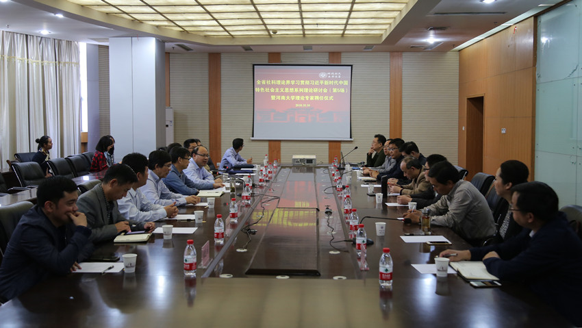 10月10日下午,河南大学理论专家聘任仪式暨全省社科理论界学习贯彻习近平新时代中国特色社会主义思想系列理论研讨会(第5场)在金明校区图书馆二楼会议室举行,党委副书记张宝明出席并讲话。受聘理论专家,党委宣传部相关同志参加了研讨会。会议由党委宣传部常务副部长、新闻中心主任王明钦主持。