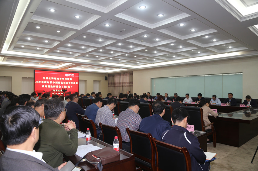 10月10日上午,由省委宣传部主办、我校承办的全省社科理论界学习贯彻习近平新时代中国特色社会主义思想系列理论研讨会(第五场)在金明校区图书馆三楼会议室举行。省委宣传部副部长尹书博,省社科联主席李庚香,校党委书记卢克平,党委副书记张宝明,党委副书记雷霆以及来自全省社科理论界有关领导专家参加了研讨会;《党的生活》杂志社、省委宣传部理论处、河南日报、大河网、河南电台、河南广播电视台等负责同志、学校基层党组织书记以及相关院系师生代表等60余人参加会议。研讨会由张宝明主持。