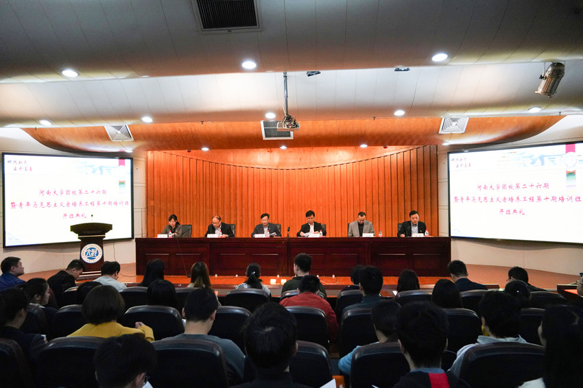 10月23日上午,河南大学团校第二十六期暨青年马克思主义者培养工程第十期培训班开班仪式在金明校区行政楼报告厅举行。校党委副书记张宝明出席仪式并讲话,校党委组织部、宣传部、学生工作部、团委负责人与会,各学院团委负责同志、本期团校和青马班全体学员参加会议。开班仪式由校团委副书记 陈旭主持。
