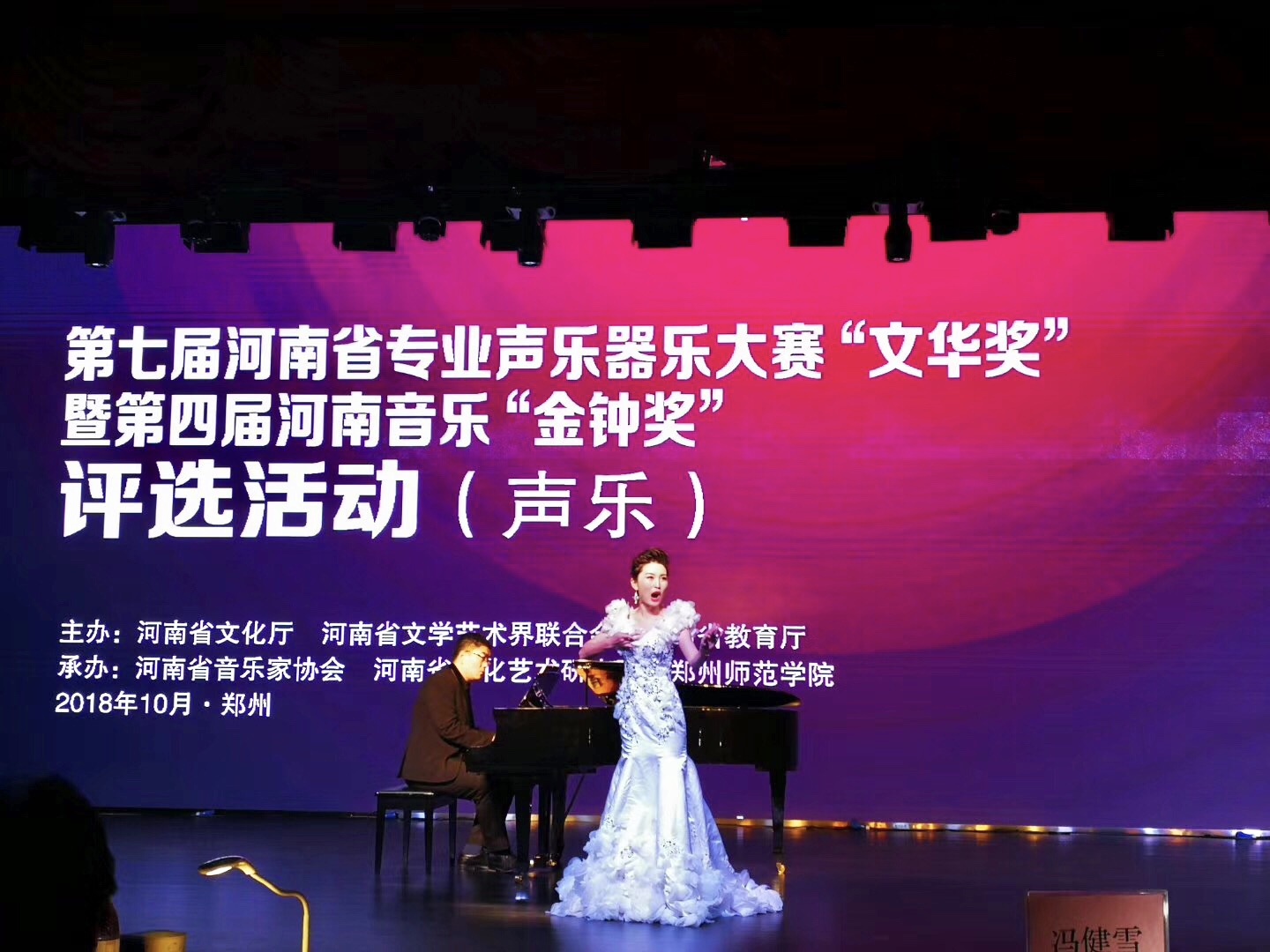 10月16日至21日,由河南省文化厅、河南省文学艺术界联合会、河南省教育厅联合主办的第七届河南省专业声乐器乐大赛“文华奖”暨第四届河南音乐“金钟奖”评选活动在郑州师范学院举行。本次大赛是河南省声乐器乐专业大赛“文华奖”与河南音乐“金钟奖”评选首次合并举行,也是我省首个由省文化厅、省文学艺术界联合会、省教育厅三家联合主办的专业音乐类大赛,是专业声乐器乐的省级最高赛事。