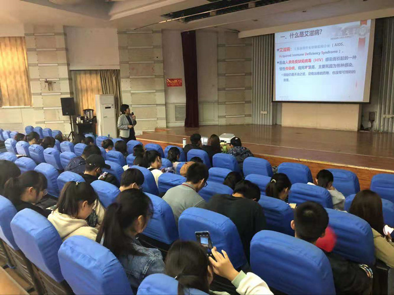 张中华讲解了什么是艾滋病、艾滋病带来的危害以及传播途径。艾滋病是由人类免疫缺陷病毒(HIV)感染而引起的慢性传染病,主要包括性传播、血液传播、母婴传播三种传播途径。她着重指出,艾滋病近几年的发病率不断整加,18至24岁为高发年龄人群,大学生艾滋病发病率更是逐年整高,已成为亟待解决的社会问题之一,在当下医疗技术无法彻底治愈艾滋病的环境下,大学生要洁身自好,养成健康文明的生活习惯,积极加强身体锻炼,不吸毒,积极防治艾滋病。