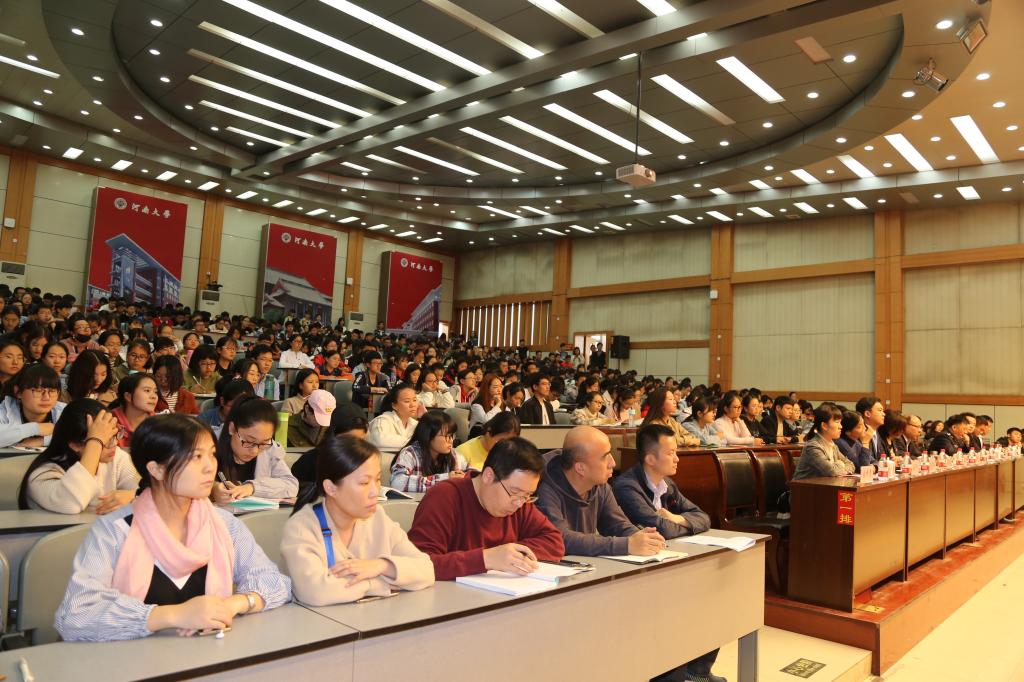 张宝明在活动开始前致词。他代表学校对活动的举办表示祝贺,对宣讲团成员的到来表示欢迎。他指出,本次巡回示范宣讲深入贯彻了党的十九大精神和习近平总书记调研指导河南时的重要讲话精神,利用微型党课这一新颖活泼的形式,将党的知识进行推广和普及,激励广大党员干部发挥示范作用。他希望河南大学广大党员干部和师生员工把握这难得的学习机会,认真听,用心记,努力学,踏实做,争做出彩河大人。