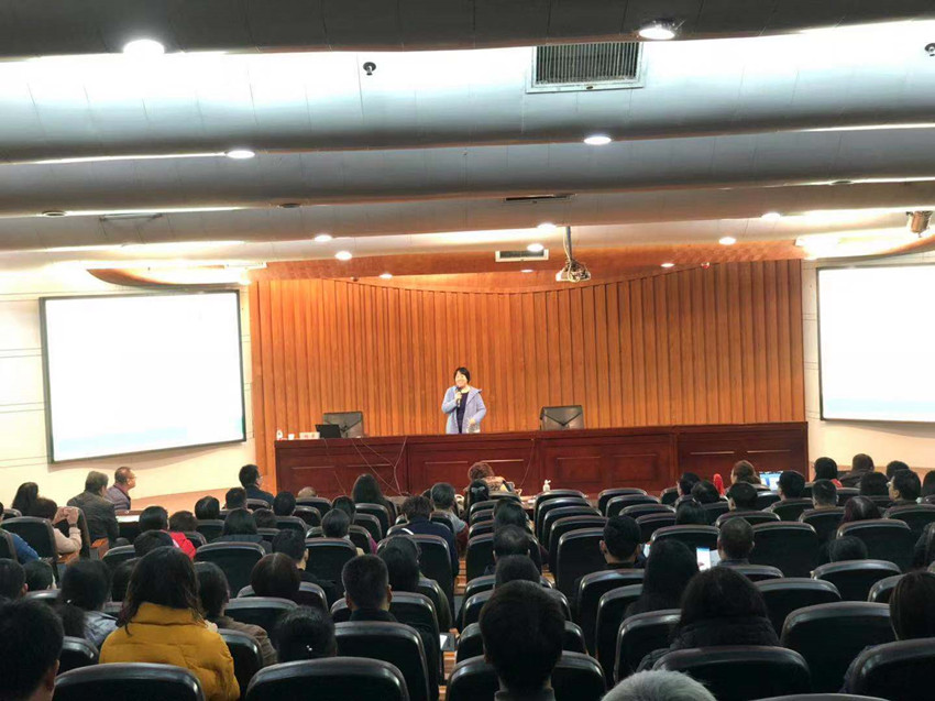 为全面贯彻“新时代全国高等学校本科教育工作会议”、“全国教育大会”等会议精神,切实做好审核评估整改阶段工作,针对审核评估中专家提出的“教学方式较为传统、信息化教学水平亟需提升”等问题,教师教学发展中心邀请清华大学杨芳教授、雨课堂培训师陈厚晴老师开展“雨课堂技术与应用”专题报告会。报告会于11月15日在金明校区行政楼二楼报告厅举行,我校160余名基层教学组织负责人参加此次会议。会议由教师教学发展中心副主任郝兆杰主持。
