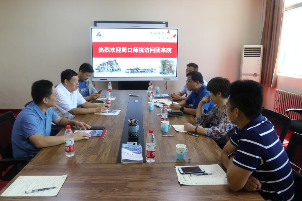 9月9日上午,周口师范学院对外合作交流处处长侯捷、副处长王娜等一行四人来到欧亚国际学院交流研讨。院长赵成新在学院二楼会议室会见了来访客人。副院长杨春伟、学院教务办公室副主任张永钢、党委办公室副主任宿云龙参加了会议。