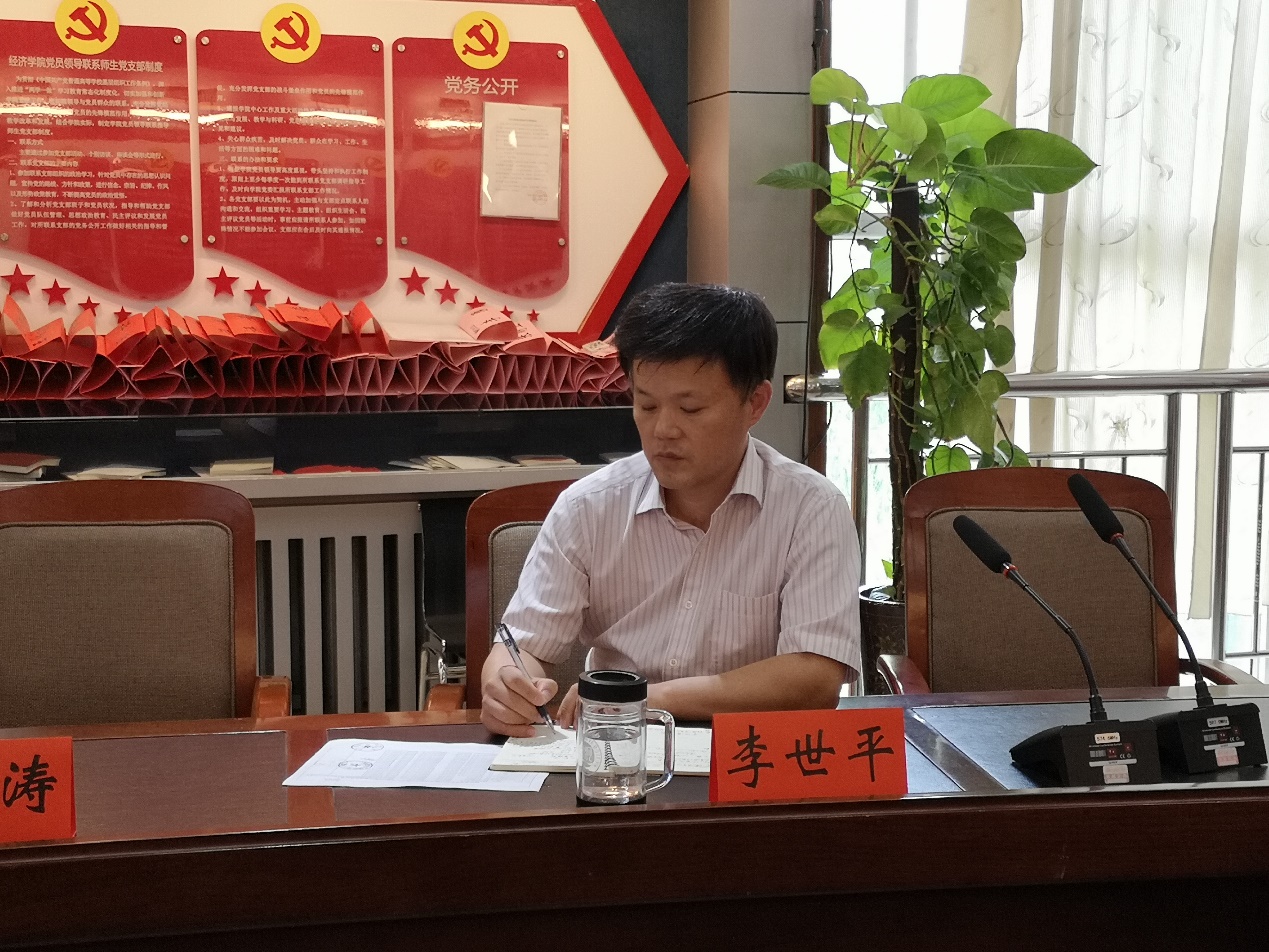 李世平表达了对新同学加入河南大学经济学院这个大家庭表示热烈欢迎,同时向同学们提出要认真对待入学教育,并对后面的入学教育做了安排。