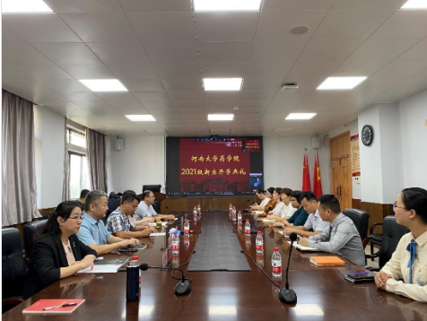 金秋九月,秋风送爽。9月15日上午9点,河南大学药学院通过线上线下相结合的方式举办了2021级新生开学典礼。学院执行院长韩光、院党委副书记宋晓勇、副院长武毅君、副院长庞晓斌、各科室负责人、教师代表何阳阳、全体辅导员和202名本科生、154名硕士生和博士生出席典礼。典礼由院党委书记梁刚主持。