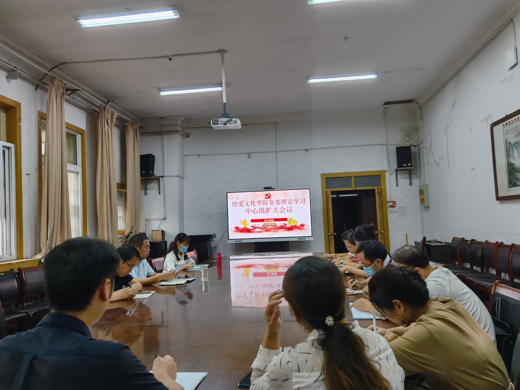 9月16日下午,历史文化学院在学院三楼会议室召开党委理论学习中心组扩大会议。学院领导班子成员、各科室负责人、系主任、党支部书记、各年级辅导员参加会议。会议由院党委书记张占党主持。