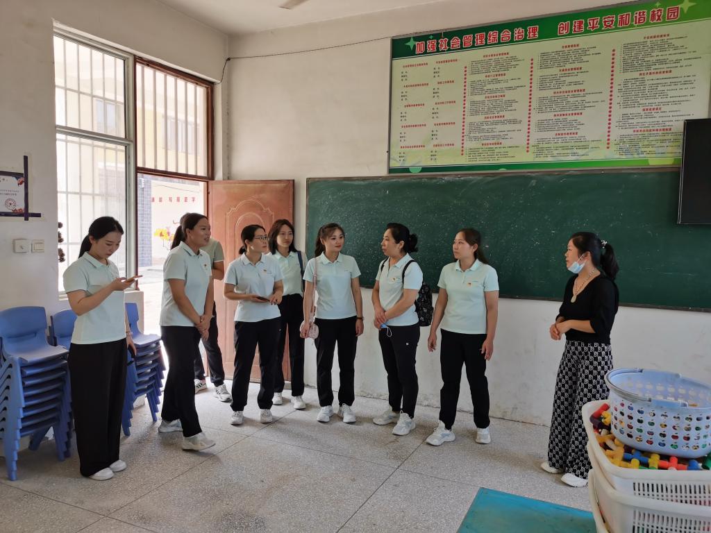课程结束后,孔辉一行走进双楼小学幼儿教育班级教室,查看教学用具用品,与负责教师认真交流,询问新学期准备情况,指导教室环境美化和幼儿文化活动设计。