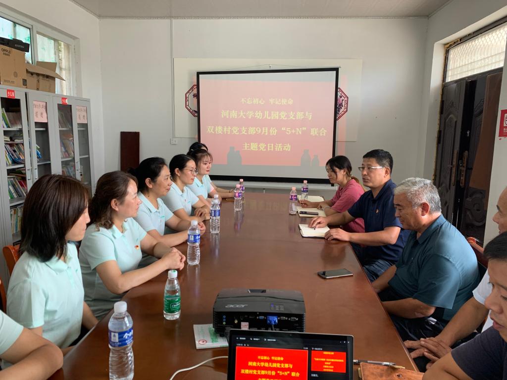 随后,在双楼村委会议室,村党支部和河南大学幼儿园党支部召开了联合主题党日活动,强化村支部组织建设和村干部能力素质提升,激发党员、村干部干事创业的积极性,统一思想,形成合力推动乡村发展,并就继续加强巩固拓展教育帮扶成果助力乡村振兴做了深入的交流和沟通。