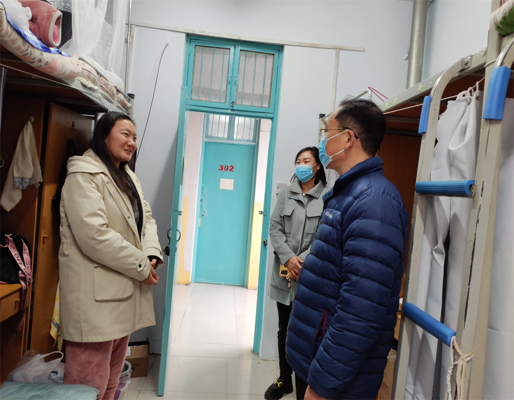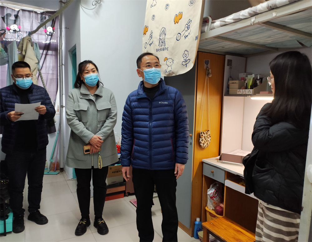 走访过程中,李仰祝一行深入了解同学们的日常生活、学习科研、疫情防控等情况,认真倾听同学们的想法。李仰祝表示,学校和学院是同学们坚强的后盾,各位老师全天24小时在线为同学们做好服务保障。李仰祝叮嘱同学们,一是要充分认识当前常态化疫情防控形势,严格落实疫情防控各项措施,做自己健康的第一责任人。二是要注意用电用水安全,注意防止网络诈骗,要不断提高鉴别力,不随意转发未经证实的信息,积极传播正能量。三是要不断提高学习工作的自律性和主动性,做好学习和科研工作安排,刻苦钻研学术,夯实专业知识,不断增强自己的能力,努力成为有理想、敢担当、能吃苦、肯奋斗的新时代优秀人才。