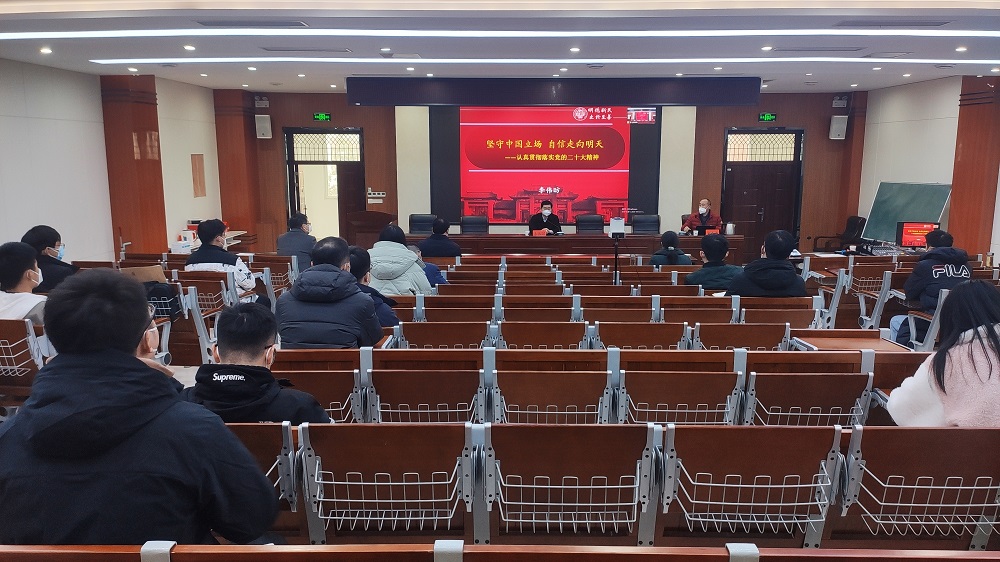 12月15日下午,经济学院组织举办学习党的二十大精神专题报告会,学校党的二十大报告宣讲团成员,《河南大学学报》编辑部主任、主编李伟昉教授应邀到学院,作了题为《坚守中国立场 自信走向明天——认真贯彻落实党的二十大精神》专题报告。学院党政领导班子成员、组织员、全体教职工、部分学生党员代表通过线上线下相结合的方式聆听了报告。报告会由院长宋丙涛主持。